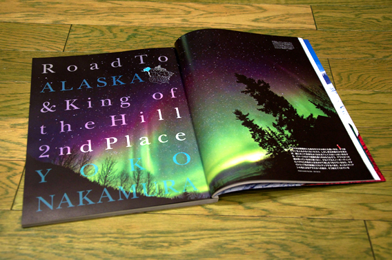 今年1月に発売されているスノーボード誌”FREERUN”にて、PROスノーボーダー達とのアラスカトリップの記事が掲載され、今回のHXBショーツに落とし込まれたオーロラの写真も掲載。