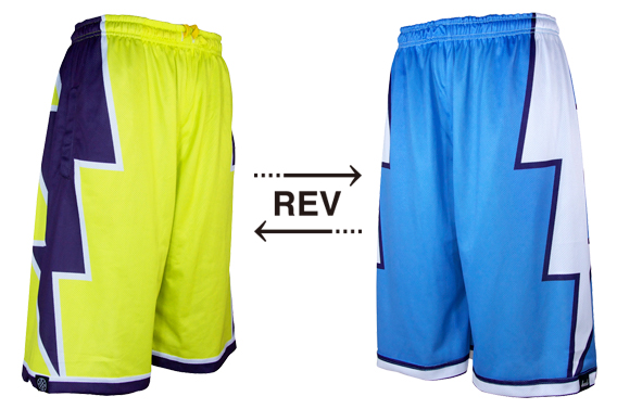クラシカルなバスケのラインデザインをベースに現代のポップストリートな感覚をサイドの稲妻ラインでミックスした、HXBリバーシブルショーツ。