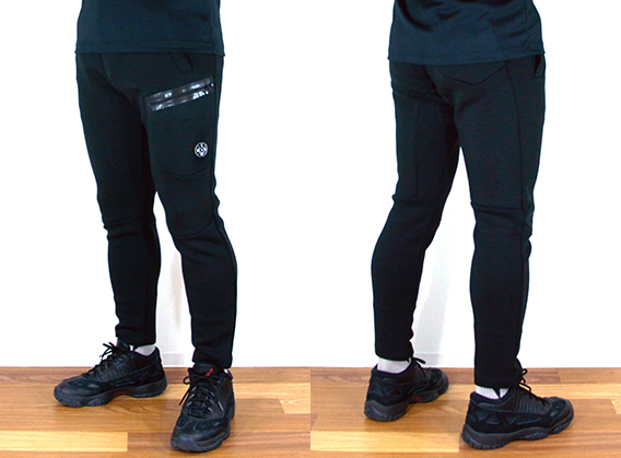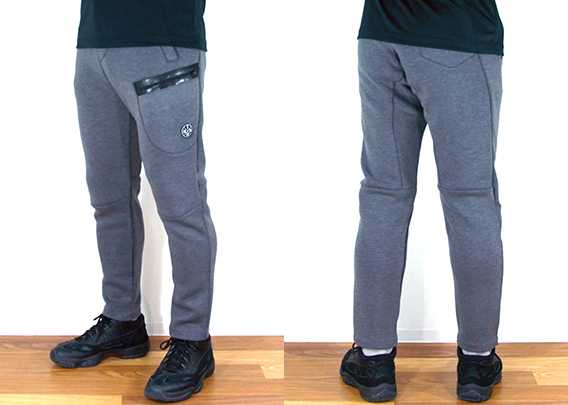 体にフィットする先細りのスリムなテーパードシルエットがフィット感と抜群のストレッチ性で軽い履き心地です。
