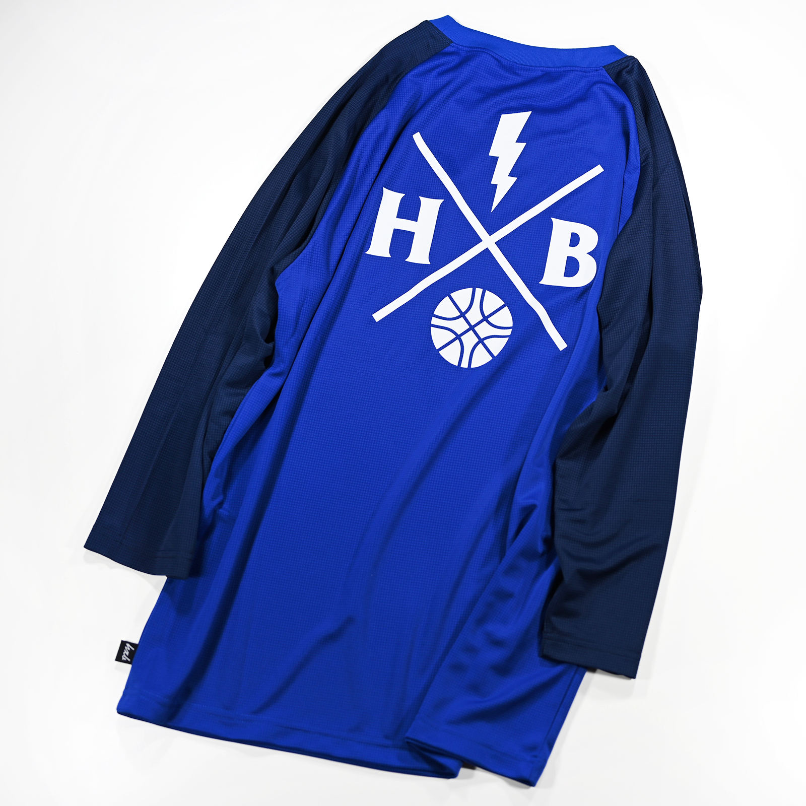特に腕を上げるバスケには間違いなく最適な仕様のラグランスリーブ。