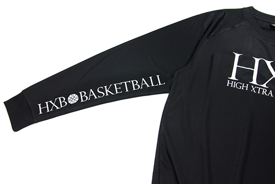 プレイ中にはチラリと見えるアクセント、右袖内側に”HXB BASKETBALL”ロゴ。