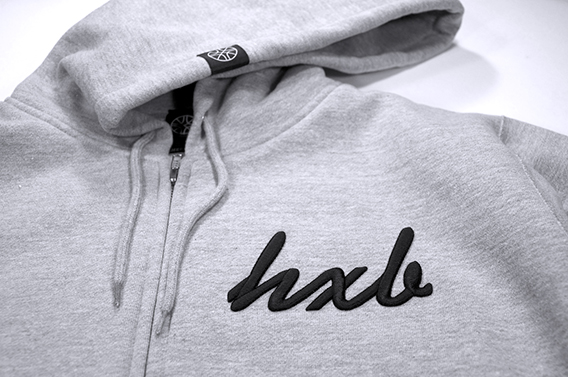 左胸には、hxb筆記体ロゴをキャップでよく見かける厚盛りの3D刺しゅう。