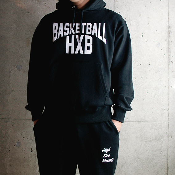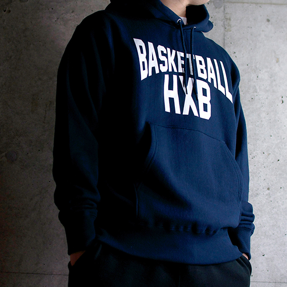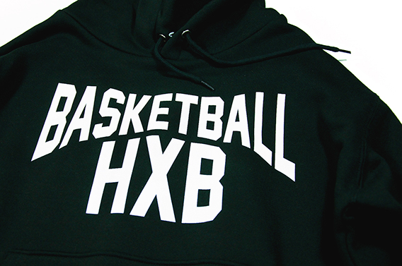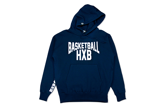 プレイ中にチラリと見え隠れする、右袖内側に”HXB BASKETBALL”ロゴプリント。