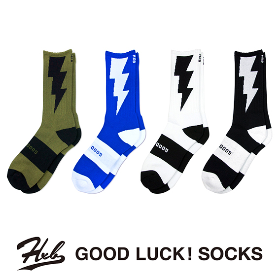 各方面より大好評のバスケブランドHXBの雷柄”GOOD LUCK SOCKS”